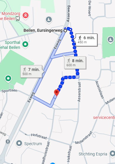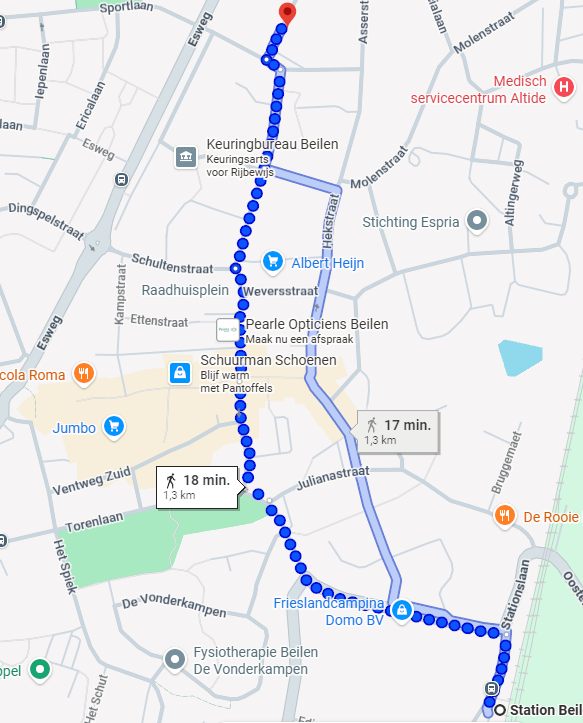Vanaf het station Beilen is het 16 minuten lopen naar Het Valkenhof.